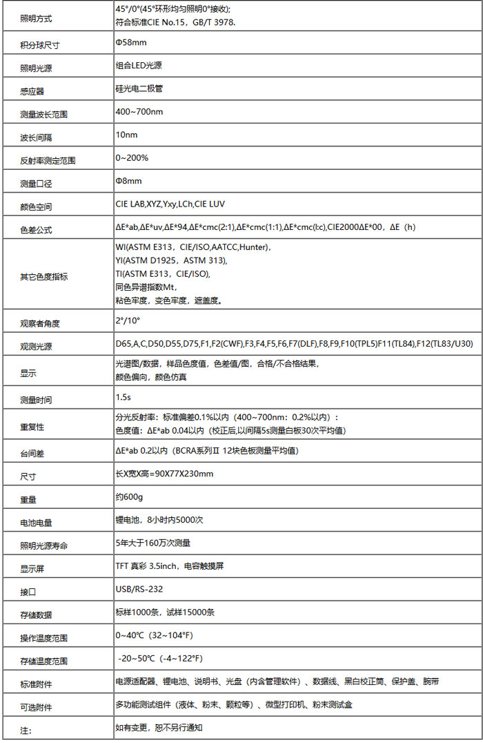 4.兩種標準觀察者角度,多種光源模式,多種表色系,符合多種標準的色度指標,滿足各種客戶對顏色測量的需求;