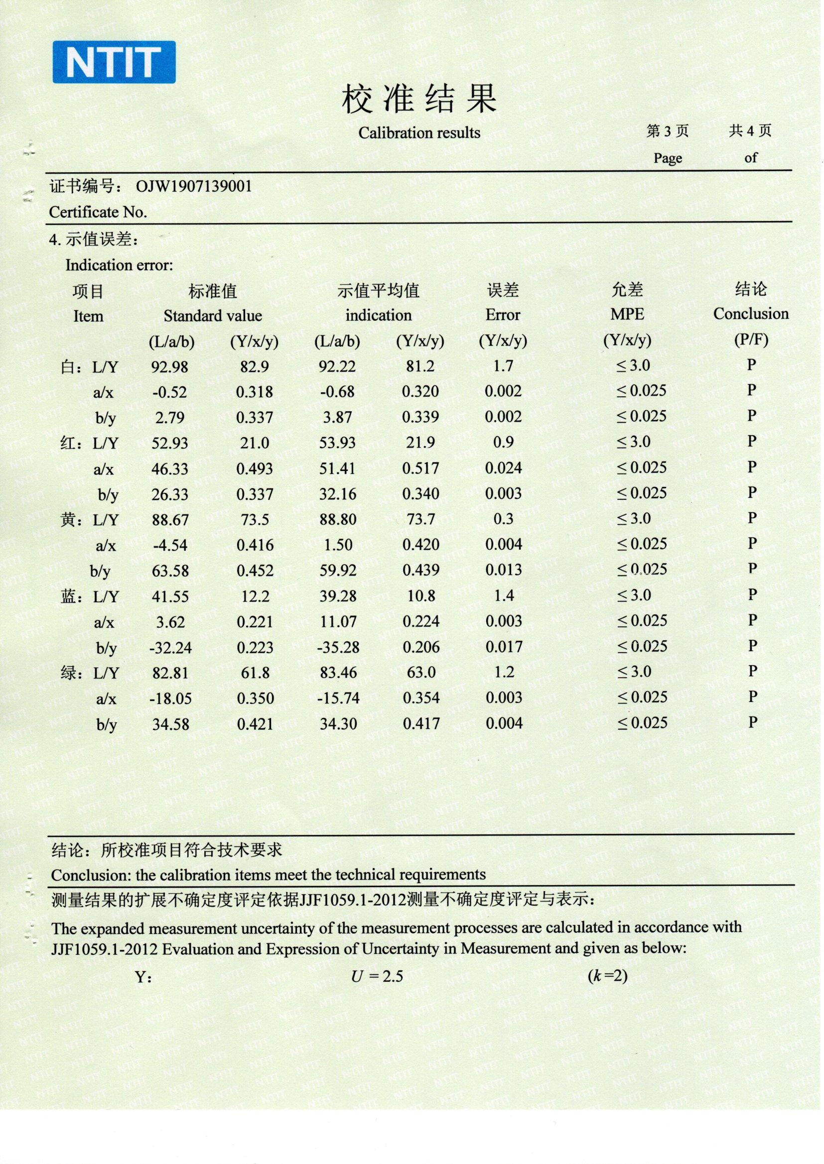 色差儀國家計(jì)量測(cè)試中心國檢檢測(cè)報(bào)告SCM CNAS NTIT校準(zhǔn)證書。