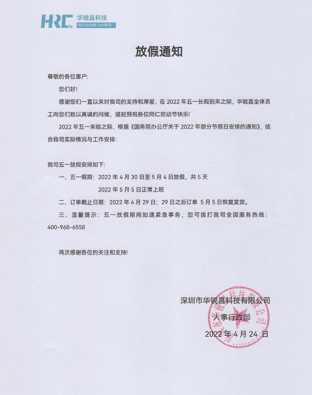 感謝您們一直以來對我司的支持和厚愛,在2022年五一長假到來之際,華銳昌全體員工向您們致以真誠的問候,提前預祝各位同仁勞動節(jié)快樂!