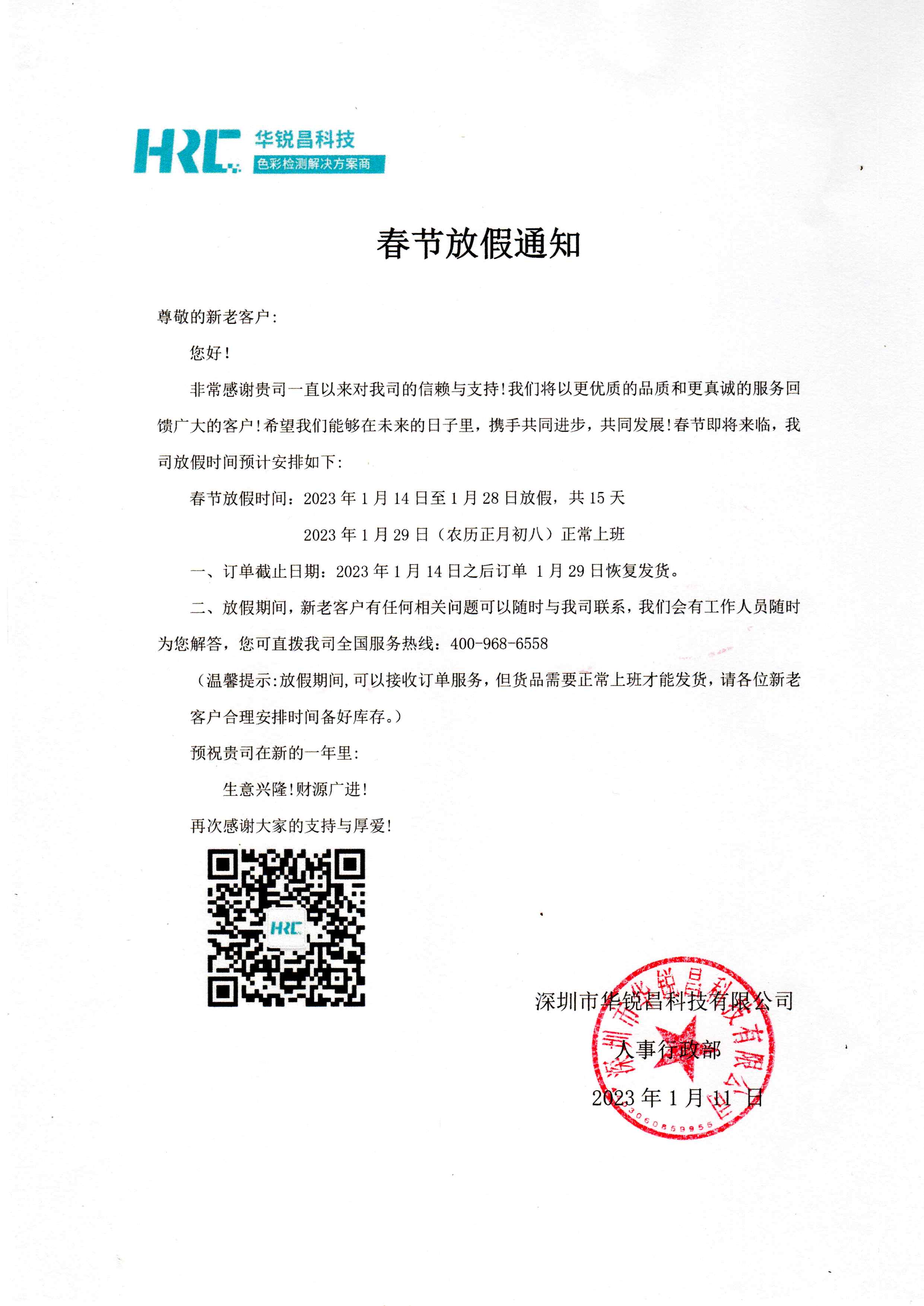 非常感謝貴司一直以來對我司的信賴與支持!我們將以更優(yōu)質(zhì)的品質(zhì)和更真誠的服務回饋廣大的客戶!希望我們能夠在未來的日子里,攜手共同進步,共同發(fā)展!春節(jié)即將來臨,我司放假時間預計安排如下: